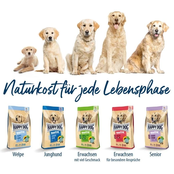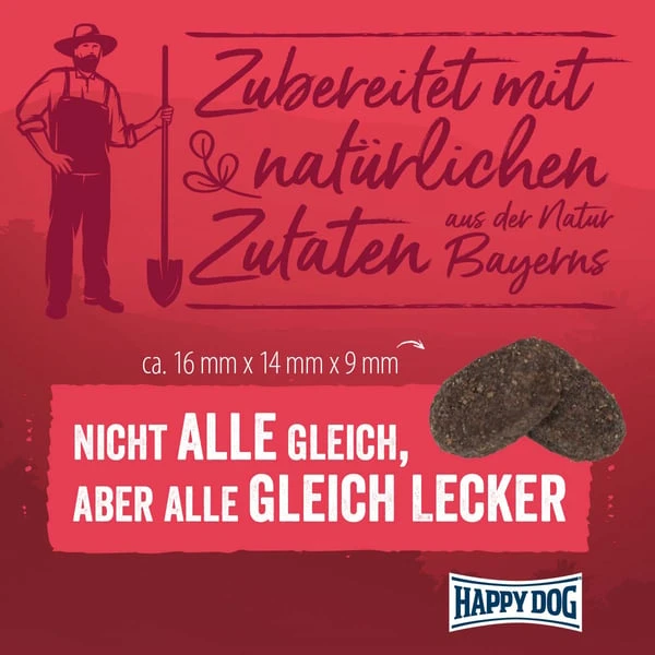 Geflügelprotein* (12%), Vollkornweizen, Weizenmehl, Maismehl, Vollkornmais, Geflügelfett, Rinderfett, Vollkorngerste, Grieben, Fleischmehl, Hämoglobin*, Rübenmelasseschnitzel* (entzuckert), Leberhydrolisat, Fischmehl (1,3%), Sonnenblumenöl (0,8%), Apfeltrester* (0,6%), Hefe*, Kaliumchlorid, Rapsöl (0,2%), Karotten*, Natriumchlorid, Grünhafer*, Sonnenblumen*, Kresse*, Petersilie*, Muschelfleisch*, (Grünkräuter gesamt: 0,3%)