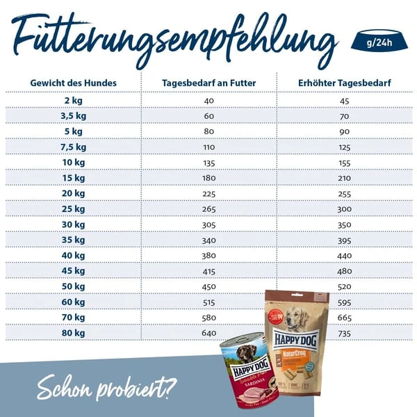 Rohprotein 24.0%, Rohfett 18.0%, Rohfaser 2.0%, Rohasche 5.5%, Calcium 1.2%,Phosphor 0.8%, Natrium 0.25%, Kalium 0.6%, Magnesium 0.1%, Omega-6-Fettsäuren 3.0%, Omega-3-Fettsäuren 0.3%