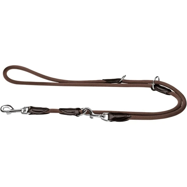 Verstellbare Führleinen sind vielseitig und flexibel. Die 3-fach verstellbare Führleine FREESTYLE bringt noch dazu die originelle Tau-Optik mit und ist besonders strapazierfähig. Mit einer verstellbare Führleine sind Sie immer auf alles vorbereitet, denn Sie können die Länge der Leine mühelos anpassen. Ob kurz oder lang, die 3-fach verstellbare Führleine FREESTYLE ist immer für Sie da! Die Ringe und Karabiner sind sorgfältig und sicher an das Tau angebracht, so dass Sie die gewünschte Länge der Leine mit wenigen Handgriffen ganz unkompliziert ändern können. Dank des vielseitigen Materials ist die Außenseite der 3-fach verstellbaren Führleine FREESTYLE weich und geschmeidig, liegt deswegen angenehm im der Hand. Für die inneren Werte sorgt ein Kern aus festem Polyamidseil, der die Leine sehr stabil macht. Das witterungsbeständige Material lässt die Leine bei jedem Spaziergang dem Wetter trotzen.