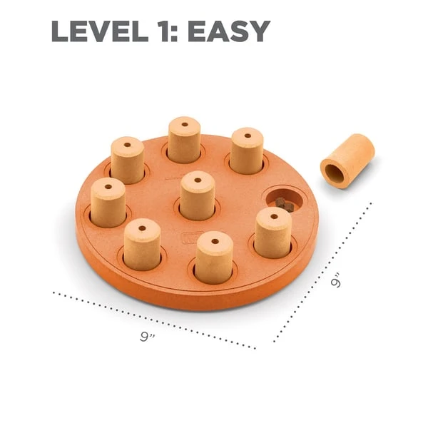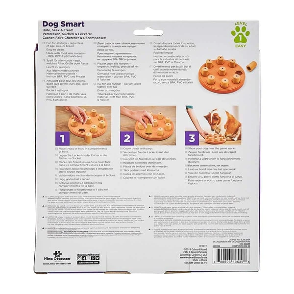 Dog Smart von Nina Ottosson by Outward Hound ist ein interaktives Denkspielzeug, das deinen Hund auf spielerische Art und Weise für Problemlösung begeistert. Dieses geistig anregende Hundespielzeug mit Level 1 hat neun versteckte Leckerlifächer, die mit den Lieblingsleckerlis deines Hundes befüllt und mit den neun Steckteilen verdeckt werden können. Dein Hund muss nun seinen Verstand benutzen, um die Steckteile mit seinen Pfoten beiseitezuschieben und so an die verdeckten Belohnungen zu gelangen. Bei diesem Denkspiel gelangt dein Liebling in nur einem Schritt an die versteckten Leckerlis, sodass es sich perfekt für Anfänger eignet.