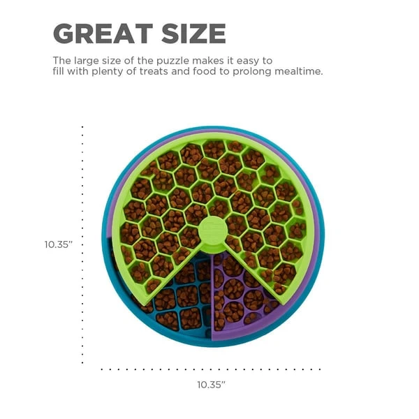 Lickin‘ Layers von Nina Ottosson by Outward Hound ist ein Hunde-Denkspielzeug mit Level 2. Die Hunde müssen drei Ebenen an Leckerlifächern bewältigen, indem sie jede davon drehen, um die Belohnung freizugeben. Denkspielzeuge für Hunde helfen den Vierbeinern, ihre natürlichen Instinkte und Verhaltensweisen einzusetzen, und unterstützten so durch geistige Anregung die Entwicklung des Gehirns. Spiele wie Lickin‘ Layers bieten ihnen die Stimulation, auf die sie so wild sind. Mit über 100 Leckerlifächern sorgt dieses Hunde-Denkspielzeug dafür, dass die Vierbeiner beschäftigt und aktiv bleiben. Es bietet außerdem genug Platz, um als Anti-Schling-Napf zu dienen. So können die Fütterungszeiten verlängert werden und dein Hund wird dazu gebracht, in einem langsameren und gesünderen Tempo zu fressen.