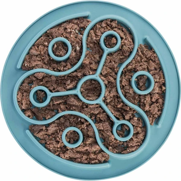 Schlingt dein Hund schnell und unkontrolliert sein Essen hinunter? Dann ist die Trixie Slow Feeding Matte die perfekte Lösung. Durch eine spezielle Form wird das Schlingen verhindert. Das weiche Material der Matte schont zudem Maul und Zähne. Die Matte ist für alle Futtersorten geeignet. Um deinem Hund eine noch größere Herausforderung zu bieten, kann die befüllte Matte eingefroren werden. Das TPE-Material ist rutschfest und spülmaschinengeeignet.